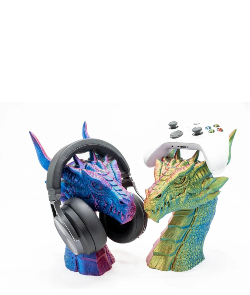Introducing the Dragon Headset Stand & Controller Holder - the perfect addition to your gaming setup! Keep your headset and controller organized and easily accessible with this sleek and stylish stand, featuring a playful dragon design. Say goodbye to clutter and hello to enhanced gaming experience!