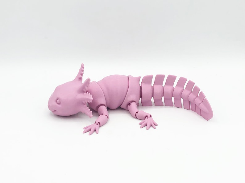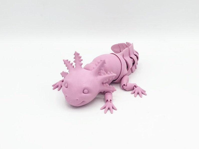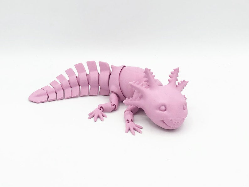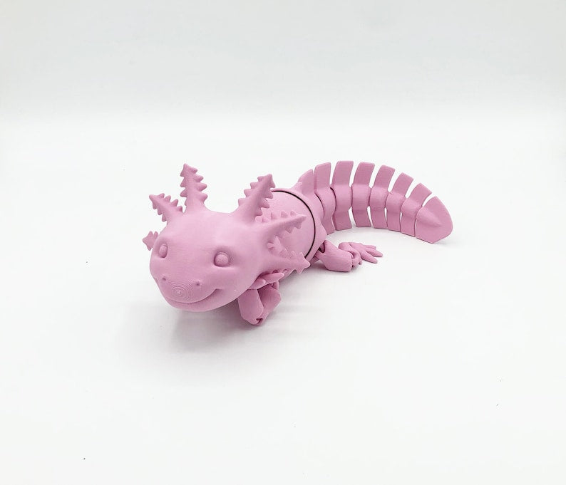 Perfect for stress, or just fun, these articulated toys will keep you entertained for hours. This flexi Axolotl is the perfect size your desk Each of these fidget toys is 3D printed in food-safe PLA in a multitude of vibrant colors. Because each of our items is manufactured in-house, prints and color may vary slightly.
